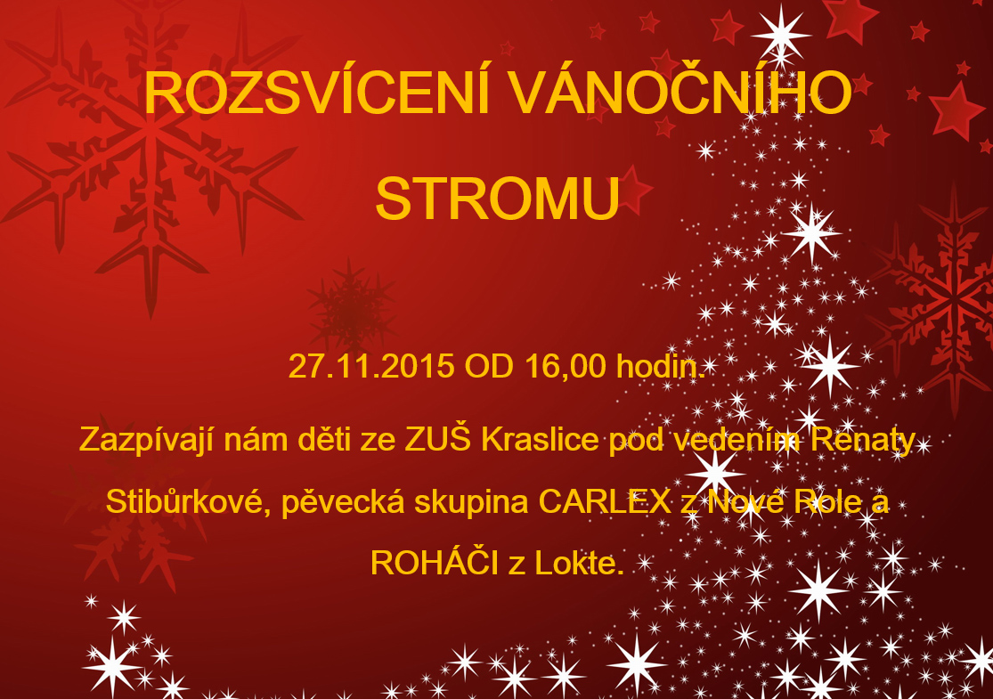 ROZSVÍCENÍ VÁNOČNÍHO STROMU 27.11.2015 OD 16,00 hodin.